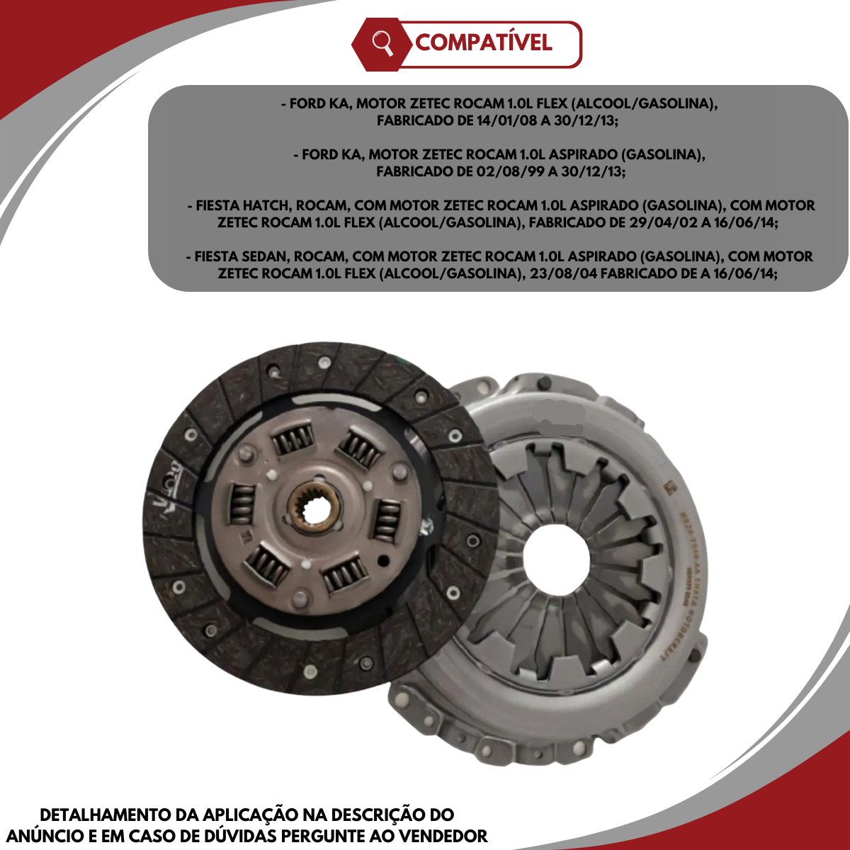 DISCO E PLATO DA EMBREAGEM FORD KA E FIESTA ROCAM 1.0L FLEX