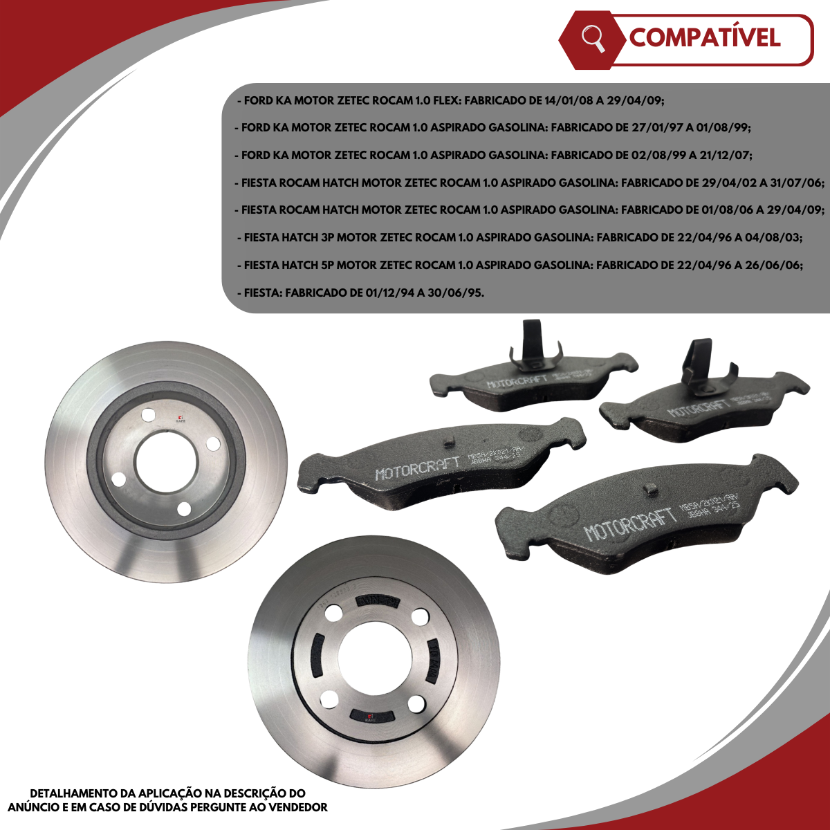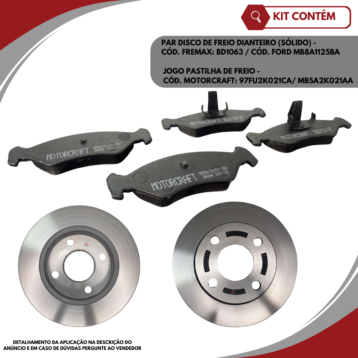 Jogo de Disco + Pastilhas De Freio da Roda Dianteira Ford Ka e Fiesta 1.0