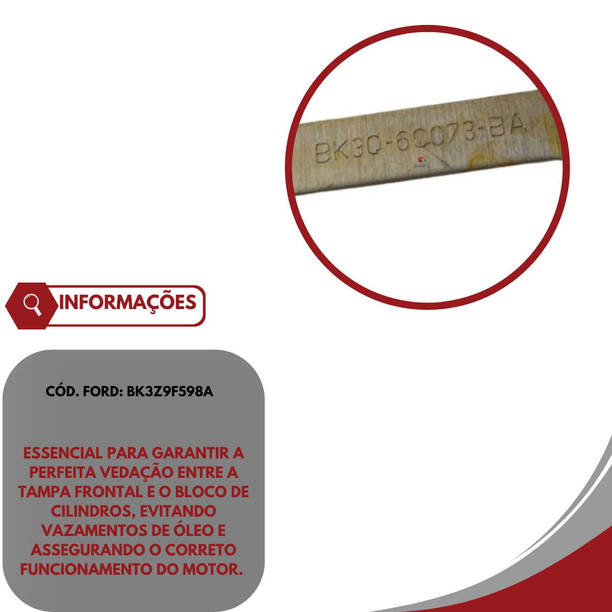JUNTA DA TAMPA FRONTAL DO BLOCO DE CILINDROS DO MOTOR DA RANGER 2.2L E 3.2L, TROLLER E TRANSIT 2.2 L