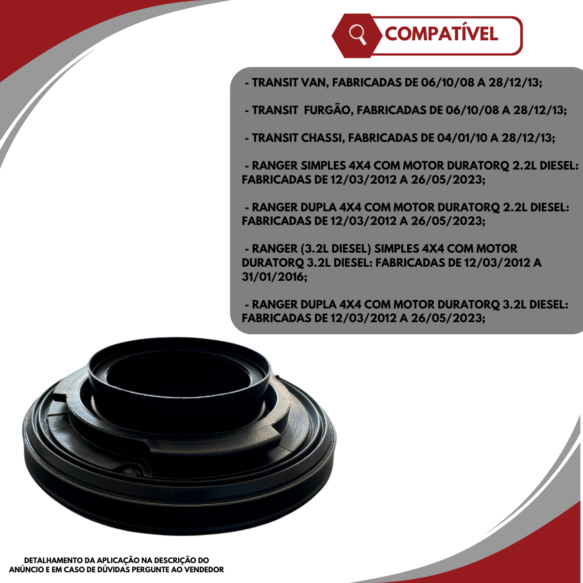 Em caso de dúvidas, entre em contato com o vendedor ou envie o número do chassi do seu veículo para confirmação da compatibilidade.