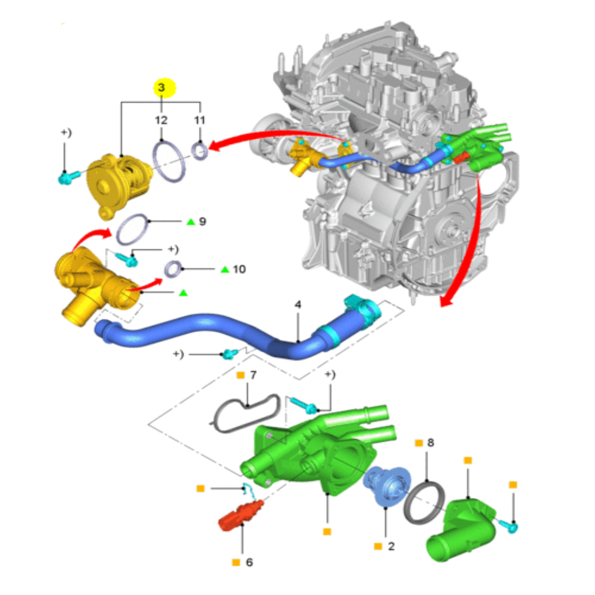 VÁLVULA TERMOSTÁTICA DA CONEXÃO DE ENTRADA DA BOMBA D¿ÁGUA DO FORD KA 1.0L TIVCT 12V FLEX ¿ CÓD.FORD: CA6Z8575C