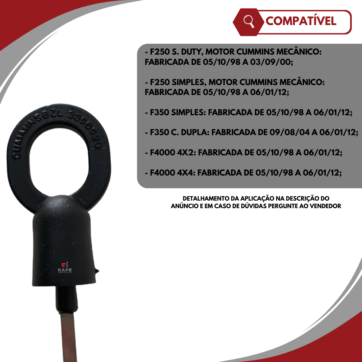 – F250 SIMPLES, MOTOR CUMMINS MECÂNICO: FABRICADA DE 05/10/98 A 06/01/12;